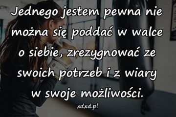 Jednego jestem pewna nie można się poddać w walce o siebie, zrezygnować ze swoich potrzeb i z wiary w swoje możliwości.