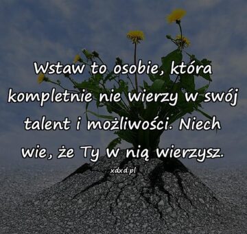 Wstaw to osobie, która kompletnie nie wierzy w swój talent i możliwości. Niech wie, że Ty w nią wierzysz.