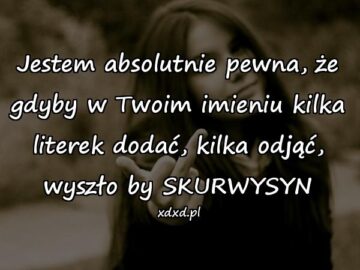 Jestem absolutnie pewna, że gdyby w Twoim imieniu kilka literek dodać, kilka odjąć, wyszło by SKURWYSYN