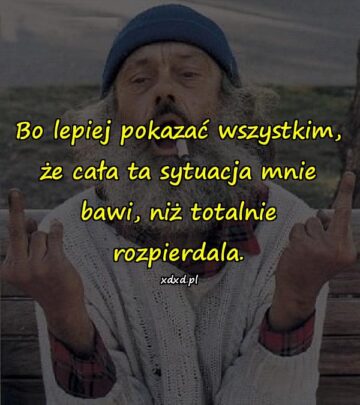 Bo lepiej pokazać wszystkim, że cała ta sytuacja mnie bawi, niż totalnie rozpierdala.