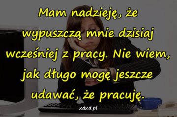 Mam nadzieję, że wypuszczą mnie dzisiaj wcześniej z pracy. Nie wiem, jak długo mogę jeszcze udawać, że pracuję.