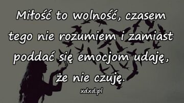 Miłość to wolność, czasem tego nie rozumiem i zamiast poddać się emocjom udaję, że nie czuję.