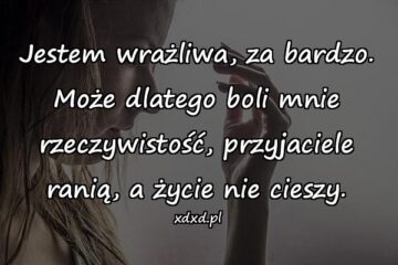 830 Cytaty o życiuMoże dlatego boli mnie rzeczywistośćJestem wrażliwa, za bardzo. Może dlatego boli mnie rzeczywistość, przyjaciele ranią, a życie nie cieszy.