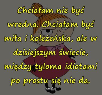 Chciałam nie być wredna. Chciałam być miła i koleżeńska, ale w dzisiejszym świecie, między tyloma idiotami po prostu się nie da.