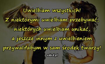 Uwielbiam wszystkich! Z niektórymi uwielbiam przebywać, niektórych uwielbiam unikać, a jeszcze innym z uwielbieniem przywaliłabym w sam środek twarzy!