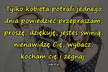 Tylko kobieta potrafi jednego dnia powiedzieć przepraszam, proszę, dziękuję, jesteś świnią, nienawidzę Cię, wybacz, kocham cię i żegnaj.