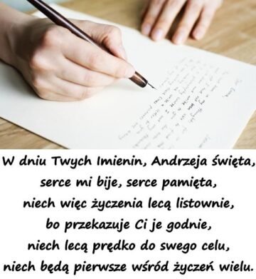 W dniu Twych Imienin, Andrzeja święta, serce mi bije, serce pamięta, niech więc życzenia lecą listownie, bo przekazuje Ci je godnie, niech lecą prędko do...