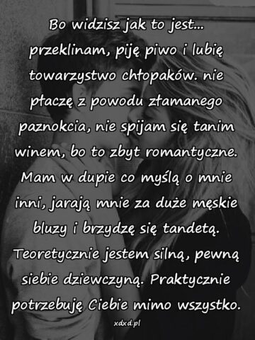 Bo widzisz jak to jest… przeklinam, piję piwo i lubię towarzystwo chłopaków. nie płaczę z powodu złamanego paznokcia, nie spijam się tanim winem, bo to...