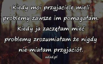 Kiedy moi przyjaciele mieli problemy zawsze im pomagałam. Kiedy ja zaczęłam mieć problemy zrozumiałam że nigdy nie miałam przyjaciół.