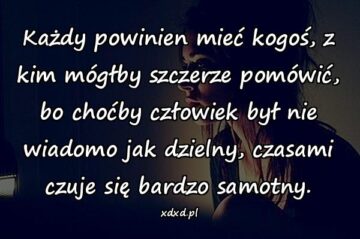 Każdy powinien mieć kogoś, z kim mógłby szczerze pomówić, bo choćby człowiek był nie wiadomo jak dzielny, czasami czuje się bardzo samotny.