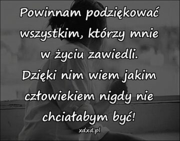 Powinnam podziękować wszystkim, którzy mnie w życiu zawiedli. Dzięki nim wiem jakim człowiekiem nigdy nie chciałabym być!