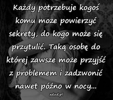 Każdy potrzebuje kogoś komu może powierzyć sekrety, do kogo może się przytulić. Taką osobę do której zawsze może przyjść z problemem i zadzwonić nawet późno...