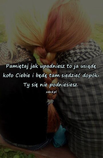 Pamiętaj jak upadniesz to ja usiądę koło Ciebie i będę tam siedzieć dopóki Ty się nie podniesiesz.
