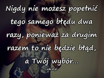 Nigdy nie możesz popełnić tego samego błędu dwa razy, ponieważ za drugim razem to nie będzie błąd, a Twój wybór…