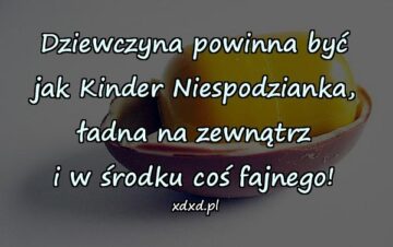 Dziewczyna powinna być jak Kinder Niespodzianka, ładna na zewnątrz i w środku coś fajnego!
