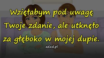 Wzięłabym pod uwagę Twoje zdanie, ale utknęło za głęboko w mojej dupie.