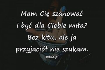 Mam Cię szanować i być dla Ciebie miła? Bez kitu, ale ja przyjaciół nie szukam.