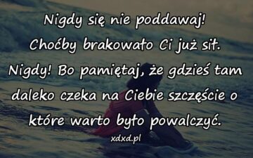 Nigdy się nie poddawaj! Choćby brakowało Ci już sił. Nigdy! Bo pamiętaj, że gdzieś tam daleko czeka na Ciebie szczęście o które warto było powalczyć.