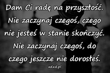 Dam Ci radę na przyszłość. Nie zaczynaj czegoś, czego nie jesteś w stanie skończyć. Nie zaczynaj czegoś, do czego jeszcze nie dorosłeś.