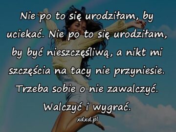 Nie po to się urodziłam, by uciekać. Nie po to się urodziłam, by być nieszczęśliwą, a nikt mi szczęścia na tacy nie przyniesie. Trzeba sobie...