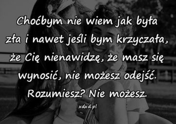 Choćbym nie wiem jak była zła i nawet jeśli bym krzyczała, że Cię nienawidzę, że masz się wynosić, nie możesz odejść. Rozumiesz? Nie możesz.