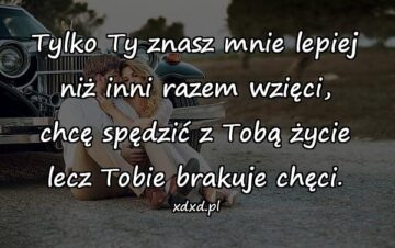 Tylko Ty znasz mnie lepiejnniż inni razem wzięci,nchcę spędzić z Tobą życienlecz Tobie brakuje chęci.