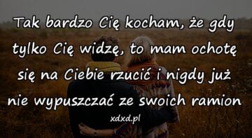 Tak bardzo Cię kocham, że gdy tylko Cię widzę, to mam ochotę się na Ciebie rzucić i nigdy już nie wypuszczać ze swoich ramion