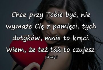 Chce przy Tobie być, nie wymaże Cię z pamięci, tych dotyków, mnie to kręci. Wiem, że też tak to czujesz.