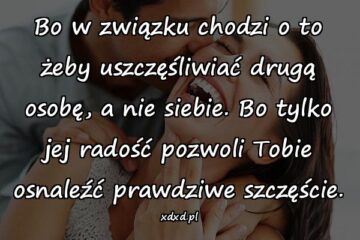 Bo w związku chodzi o to żeby uszczęśliwiać drugą osobę, a nie siebie. Bo tylko jej radość pozwoli Tobie osnaleźć prawdziwe szczęście.