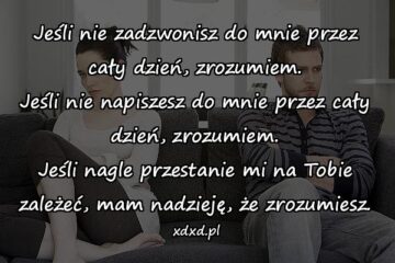 Jeśli nie zadzwonisz do mnie przez cały dzień, zrozumiem. Jeśli nie napiszesz do mnie przez cały dzień, zrozumiem. Jeśli nagle przestanie mi na Tobie zależeć,...