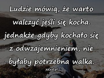 Ludzie mówią, że warto walczyć jeśli się kocha. jednakże gdyby kochało się z odwzajemnieniem, nie byłaby potrzebna walka.