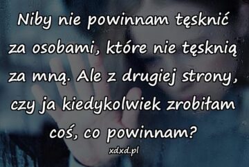 Niby nie powinnam tęsknić za osobami, które nie tęsknią za mną. Ale z drugiej strony, czy ja kiedykolwiek zrobiłam coś, co powinnam?
