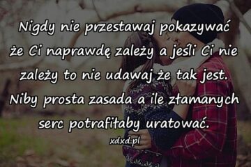 Nigdy nie przestawaj pokazywać że Ci naprawdę zależy a jeśli Ci nie zależy to nie udawaj że tak jest. Niby prosta zasada a ile złamanych...