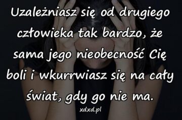 Uzależniasz się od drugiego człowieka tak bardzo, że sama jego nieobecność Cię boli i wkurrwiasz się na cały świat, gdy go nie ma.