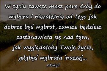 W życiu zawsze masz parę dróg do wyboru i niezależnie od tego jak dobrze byś wybrał, zawsze będziesz zastanawiała się nad tym, jak wyglądałoby Twoje...