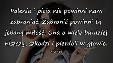 Palenia i picia nie powinni nam zabraniać. Zabronić powinni tą jebaną miłość. Ona o wiele bardziej niszczy, szkodzi i pierdoli w głowie.