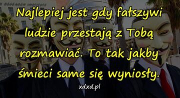Najlepiej jest gdy fałszywi ludzie przestają z Tobą rozmawiać. To tak jakby śmieci same się wyniosły.