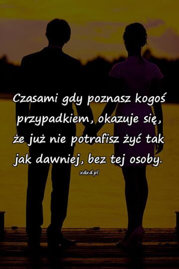 Czasami gdy poznasz kogoś przypadkiem, okazuje się, że już nie potrafisz żyć tak jak dawniej, bez tej osoby.