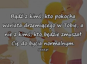 Bądź z kimś, kto pokocha wariata drzemiącego w Tobie, a nie z kimś, kto będzie zmuszał Cię do bycia normalnym.