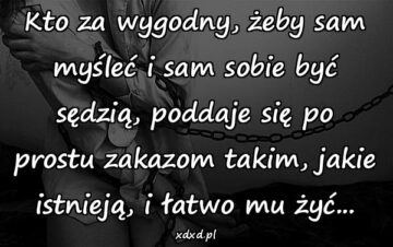 Kto za wygodny, żeby sam myśleć i sam sobie być sędzią, poddaje się po prostu zakazom takim, jakie istnieją, i łatwo mu żyć…