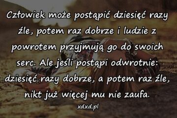 Człowiek może postąpić dziesięć razy źle, potem raz dobrze i ludzie z powrotem przyjmują go do swoich serc. Ale jeśli postąpi odwrotnie: dziesięć razy dobrze,...
