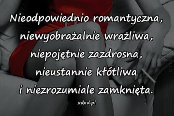 Nieodpowiednio romantyczna, niewyobrażalnie wrażliwa, niepojętnie zazdrosna, nieustannie kłótliwa i niezrozumiale zamknięta.