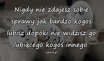 Nigdy nie zdajesz sobie sprawy jak bardzo kogoś lubisz dopóki nie widzisz go lubiącego kogoś innego.