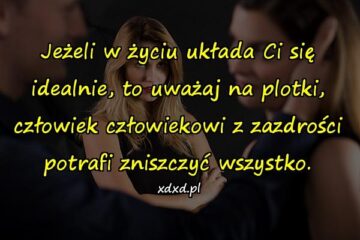Jeżeli w życiu układa Ci się idealnie, to uważaj na plotki, człowiek człowiekowi z zazdrości potrafi zniszczyć wszystko.