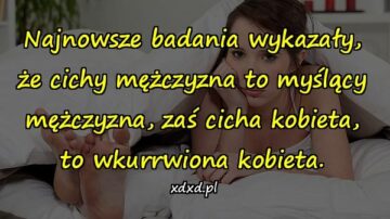 Najnowsze badania wykazały, że cichy mężczyzna to myślący mężczyzna, zaś cicha kobieta, to wkurrwiona kobieta.