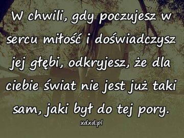W chwili, gdy poczujesz w sercu miłość i doświadczysz jej głębi, odkryjesz, że dla ciebie świat nie jest już taki sam, jaki był do tej...