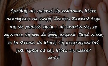 Spróbuj nie opierać się zmianom, które napotykasz na swojej drodze. Zamiast tego daj się ponieść życiu. I nie martw się, że wywraca się ono do...