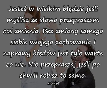 Jesteś w wielkim błędzie jeśli myślisz że słowo przepraszam coś zmienia. Bez zmiany samego siebie swojego zachowania i naprawy błędów jest tyle warte co nic....