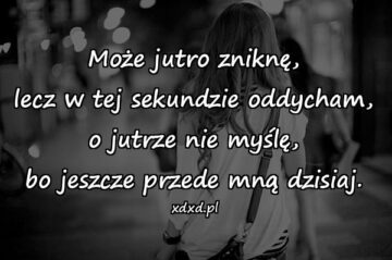 Może jutro zniknę, lecz w tej sekundzie oddycham, o jutrze nie myślę, bo jeszcze przede mną dzisiaj.