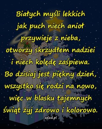 Białych myśli lekkich jak puch niech anioł przywieje z nieba, otworzy skrzydłem nadziei i niech kolędę zaśpiewa. Bo dzisiaj jest piękny dzień, wszystko się rodzi...